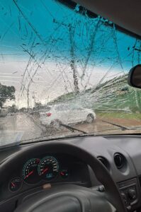 Na área central da cidade, foram registradas pelo menos cinco quedas de árvores, além de galhos que caíram com a força do vento. Placas de propaganda também foram arrancadas e atingiram dois veículos, que tiveram os para-brisas quebrados.