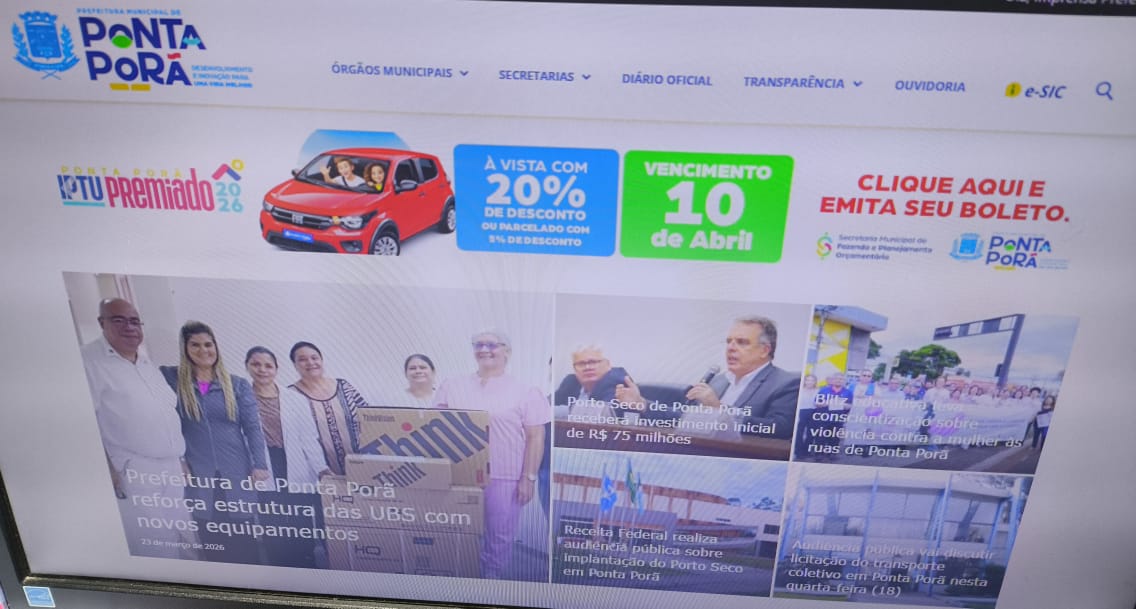 A Prefeitura de Ponta Porã, por meio da Secretaria Municipal de Fazenda e Planejamento Orçamentário, informou que o vencimento da primeira parcela do IPTU 2026 será no dia 10 de abril e que os carnês já estão disponíveis para impressão no site oficial do município.