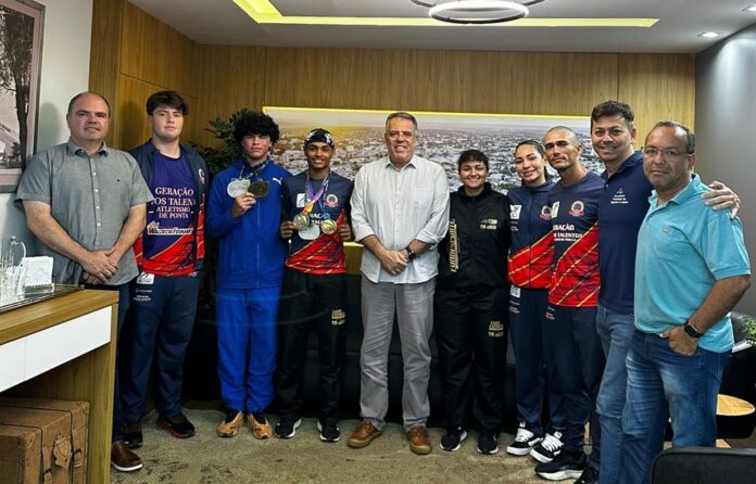 O prefeito Eduardo Campos recebeu na tarde desta terça-feira, dia 16, um grupo de atletas de Ponta Porã que vêm se destacando em competições nacionais. A visita contou com a presença do secretário municipal de Esporte e Lazer, Ricardo Torraca, do presidente da Federação de Atletismo de Mato Grosso do Sul (FAMS), Ageu de Oliveira, do vereador Waldecir Fernandes e do professor e técnico Fredy Miranda.