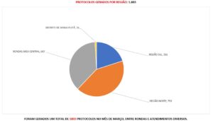 Ao todo, foram gerados 1.803 protocolos em todas as regiões da cidade, com destaque para a região norte, que concentrou 759 registros, seguida pela área central com 667, região sul com 361 e o distrito de Sanga Puitã com 16.