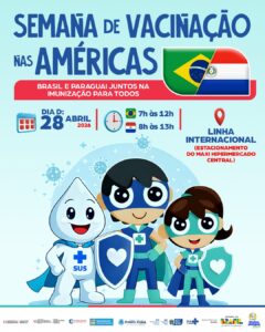 A Semana de Vacinação nas Américas será oficialmente aberta nesta terça-feira, dia 28 de abril, a partir das 7h, na Linha Internacional, no estacionamento do Maxi Hipermercado, divisa de Ponta Porã com Pedro Juan Caballero. O evento segue até às 12h e marca mais uma importante ação conjunta entre Brasil e Paraguai na área da saúde.
